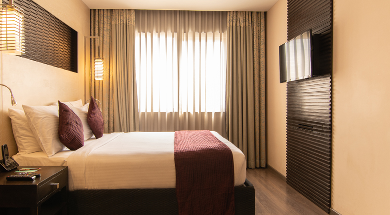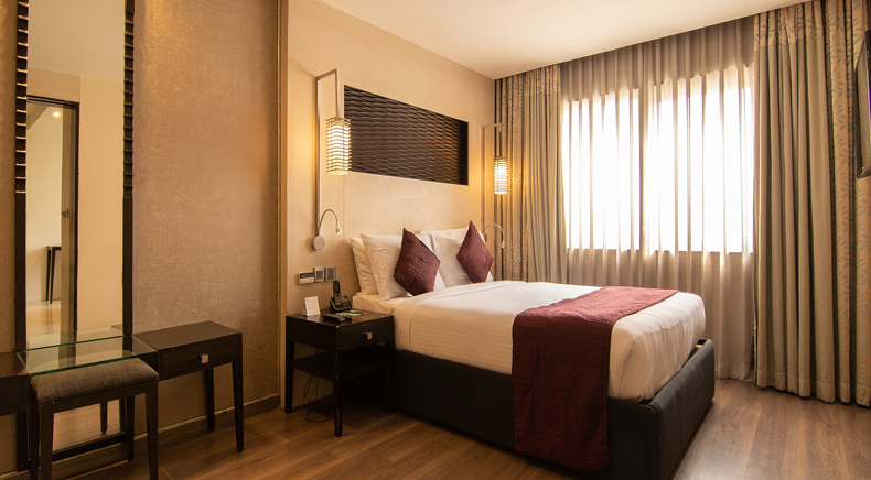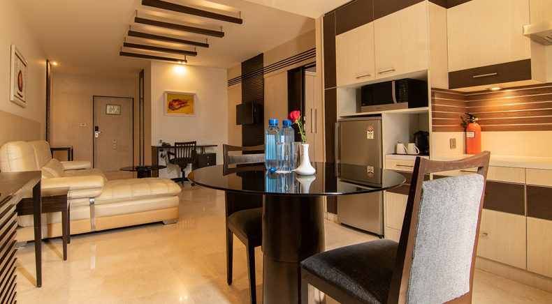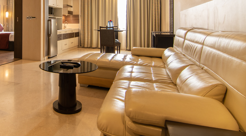 Featuring a size of 850 sq.ft. With the ambience of a small but luxurious home, our one bedroom residence comes with a spacious living cum dining room. Tastefully-furnished and cosy, it's perfect for a couple or a professional.