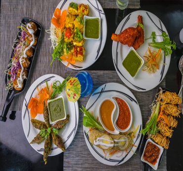 Spider Roll, Paneer Tikka, Chicken Tangdi Kebab, Spider Roll, Chicken Nestled Kebab, Veg Kurkure Kebab