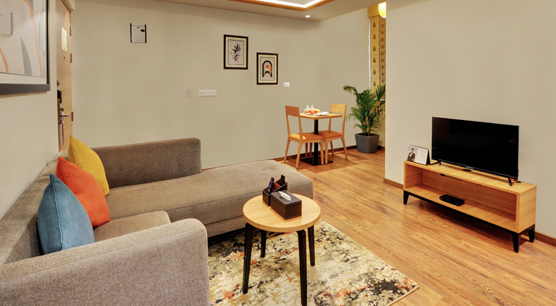 Innistique offers boutique suite, in the hues of beige and brown, earthy meets the ethereal in your stay with us. 24 hours front desk, laundry service, free wifi and complimentary breakfast, fully functional kitchen, tea coffee maker, comfortable beds and lazy sofas are there for simple solid satisfaction.