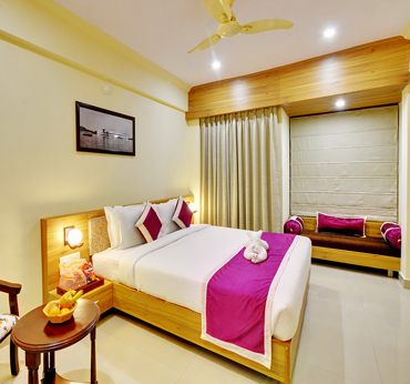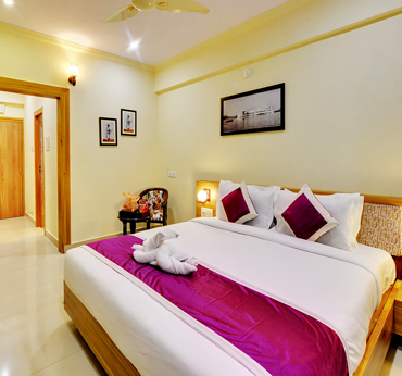 Indulge in the epitome of luxury within our state-of-the-art rooms, meticulously designed to offer 300 square feet of pure opulence. Nestled within, a king-size bed beckons, promising nights of unparalleled comfort. Ample wardrobe space ensures your belongings find a home of their own, while every corner exudes an aesthetic sense of tranquility and convenience.